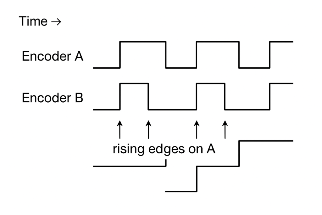 If the motor is rotating forward, B will always be LOW during A’s rising edge, so the tick count increases. If the motor is spinning in reverse, B will always be HIGH at that same moment, so the tick count decreases. This simple check lets your Arduino know not just how much the motor has moved, but which way it is moving.