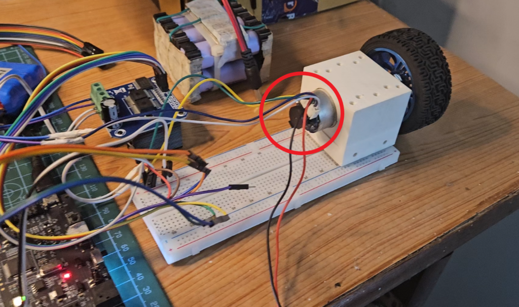 Every time the motor spins a little bit, the encoder sends small signals, called ticks, to the Arduino. By counting these ticks, we can figure out how far the motor has turned. If we count how many ticks happen in a second, we can also know how fast it’s spinning.