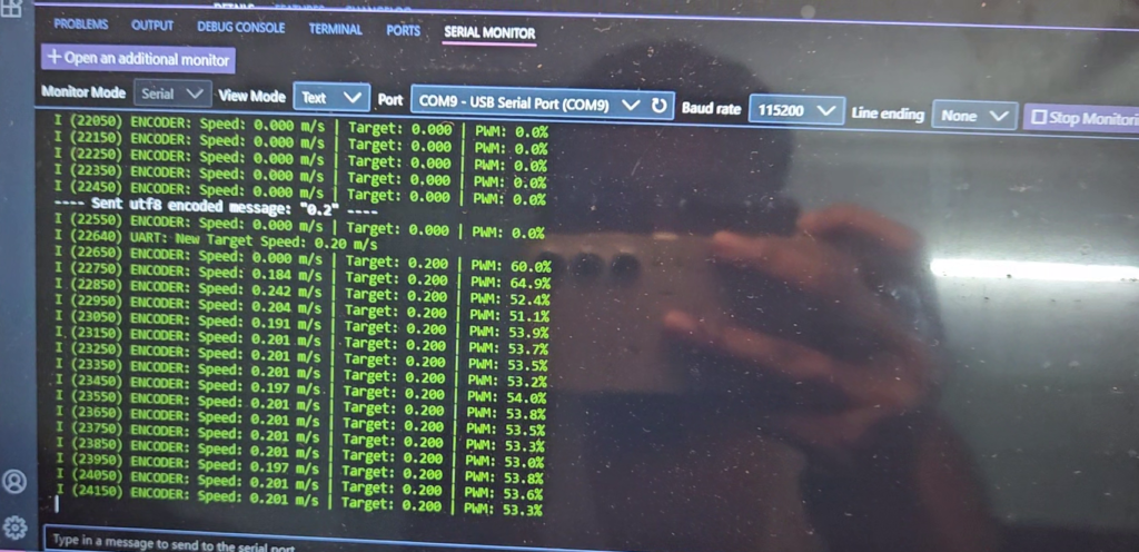 ESP_LOGI(TAG_ENCODER, "Speed: %.3f m/s | Target: %.3f | PWM: %.1f%%", currentSpeed, target_speed_mps, pwmValue);
